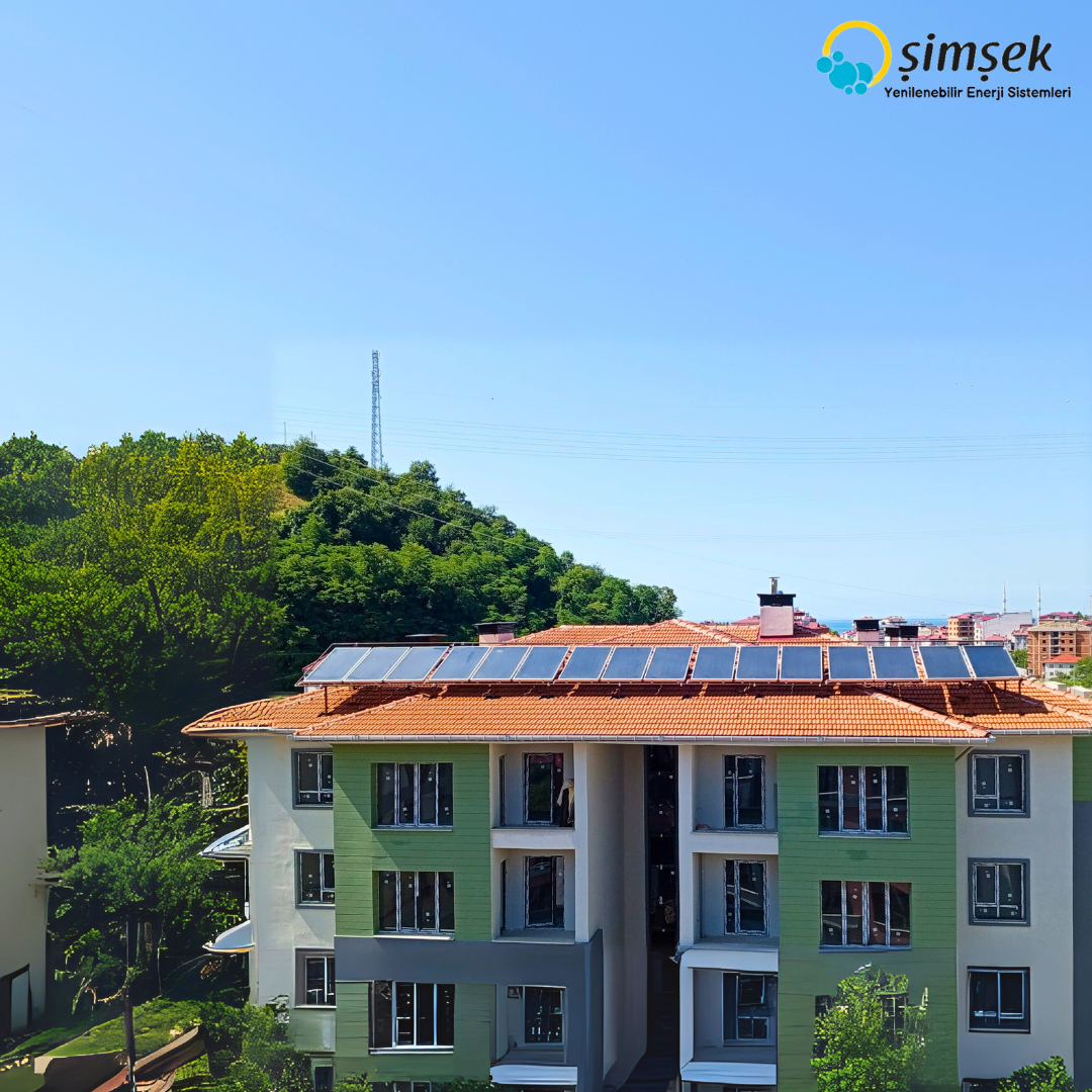 Trabzon Çarşıbaşı 166 TOKİ Konutu'nda kullanılmak üzere toplamda 112 adet ŞİMŞEK marka güneş kollektörlerimizin montajı tamamlanmıştır.